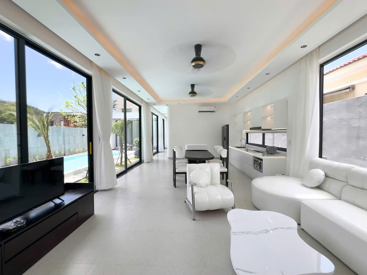 Một không gian nghỉ dưỡng nhẹ nhàng, tinh tế với tông trắng hiện đại, hoàn hảo cho gia đình nhỏ hoặc nhóm bạn thân muốn tận hưởng kỳ nghỉ riêng tư và thư giãn.